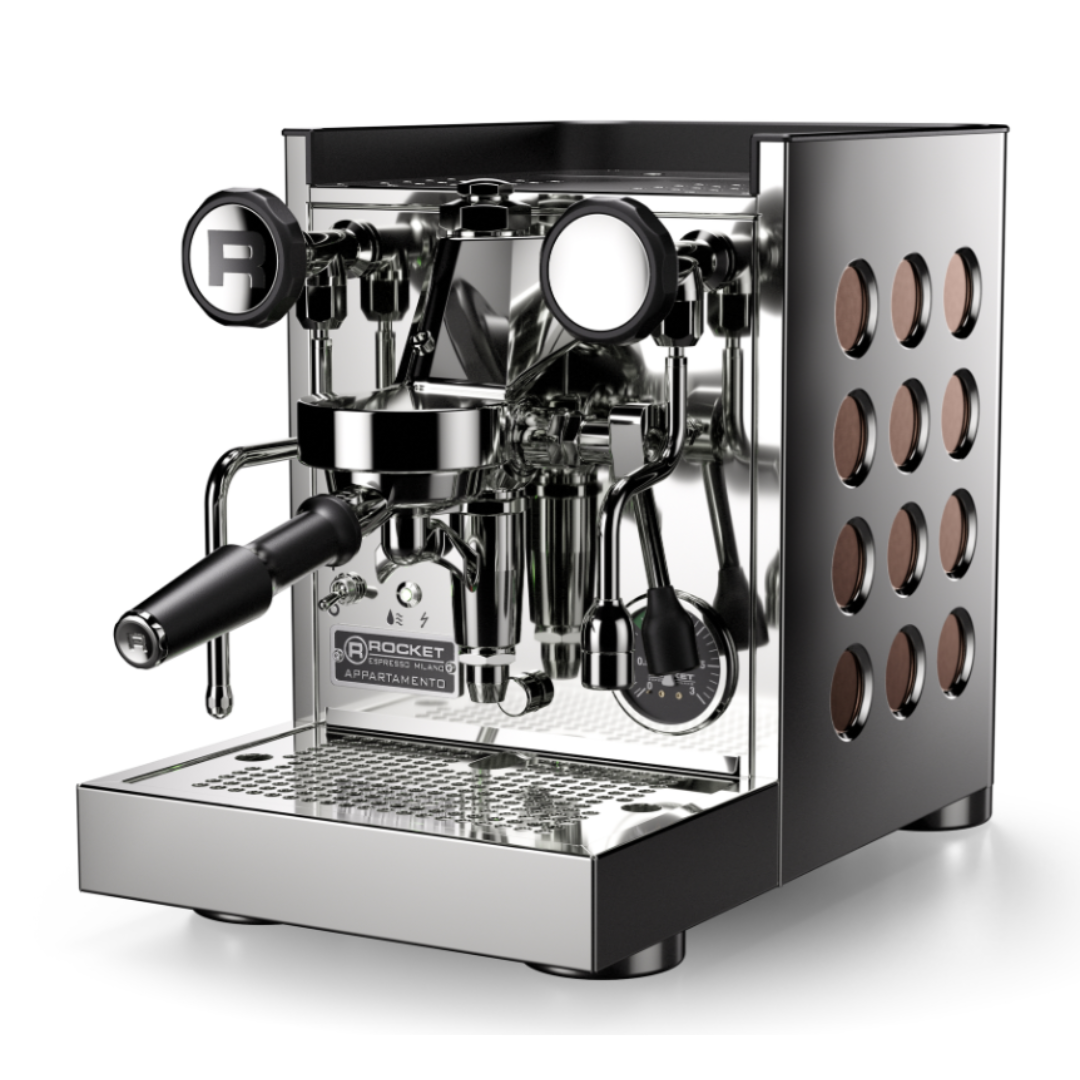 Die neue Appartamento TCA von Rocket Espresso ist die perfekte Evolution einer Kult-Maschine. Die Weiterentwicklung der Rocket Appartamento überzeugt mit einem überarbeiteten Design und neuen Funktionen. Die abgerundete Rückseite, die neue Brühgruppenform, und der vertikale Rocket Schriftzug auf der Rückseite sind nur ein paar optische Anpassungen, die sofort ins Auge stechen. TCA steht für "Temperature Control Adjustment", denn die Maschine kann neu auf 4 Brühtemperaturen eingestellt werden.